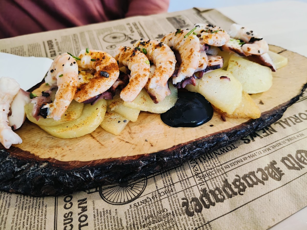 For those with a love for bold flavors, the Champiñones Empanados Con Guacamole y Hummus is a must-try. The breaded mushrooms, served with creamy guacamole and hummus, create the perfect balance of textures and tastes. Another standout on the menu is the Tabla de Papas Panaderas con Pulpo y Langostinos. This dish combines tender octopus and juicy prawns atop a bed of crispy, golden potatoes, making it a perfect sharing dish for friends or groups.