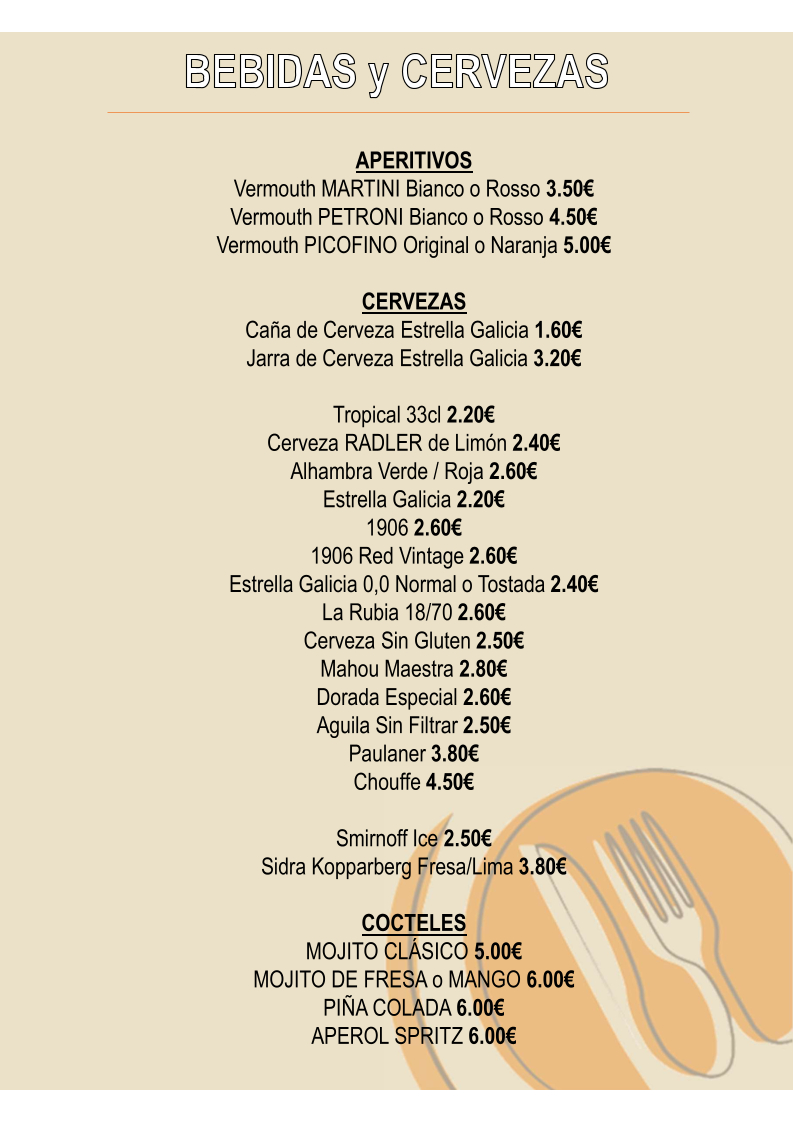 For those looking to enjoy a refreshing drink, Cocacola NORMAL 1.5L and Cocacola ZERO 1.5L are available, along with the local Alhambra Verde beer. The Las Friturillas Del Gastrobar section is perfect for snack lovers, featuring tasty options like Ración De Papas Fritas (fried potatoes), Tiras De Pollo Empanadas (breaded chicken strips), and Champiñones Empanados (breaded mushrooms), as well as more adventurous choices like Gyozas De Verduras Con Salsa Teriyaki Y Sésamo (vegetable gyozas with teriyaki sauce and sesame) and Verduras En Tempura Con Miel De Caña (tempura vegetables with sugar cane honey).
