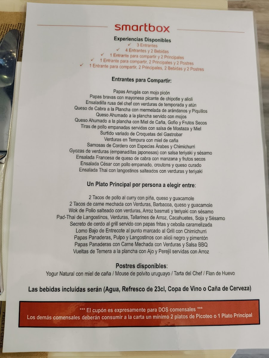 Gastrobar De Cuchillo Y Tenedor offers a diverse and tempting menu that combines the vibrant flavors of Spanish cuisine with international influences. The menu is carefully curated to cater to various tastes, from casual bites to hearty meals, ensuring there's something for everyone.
