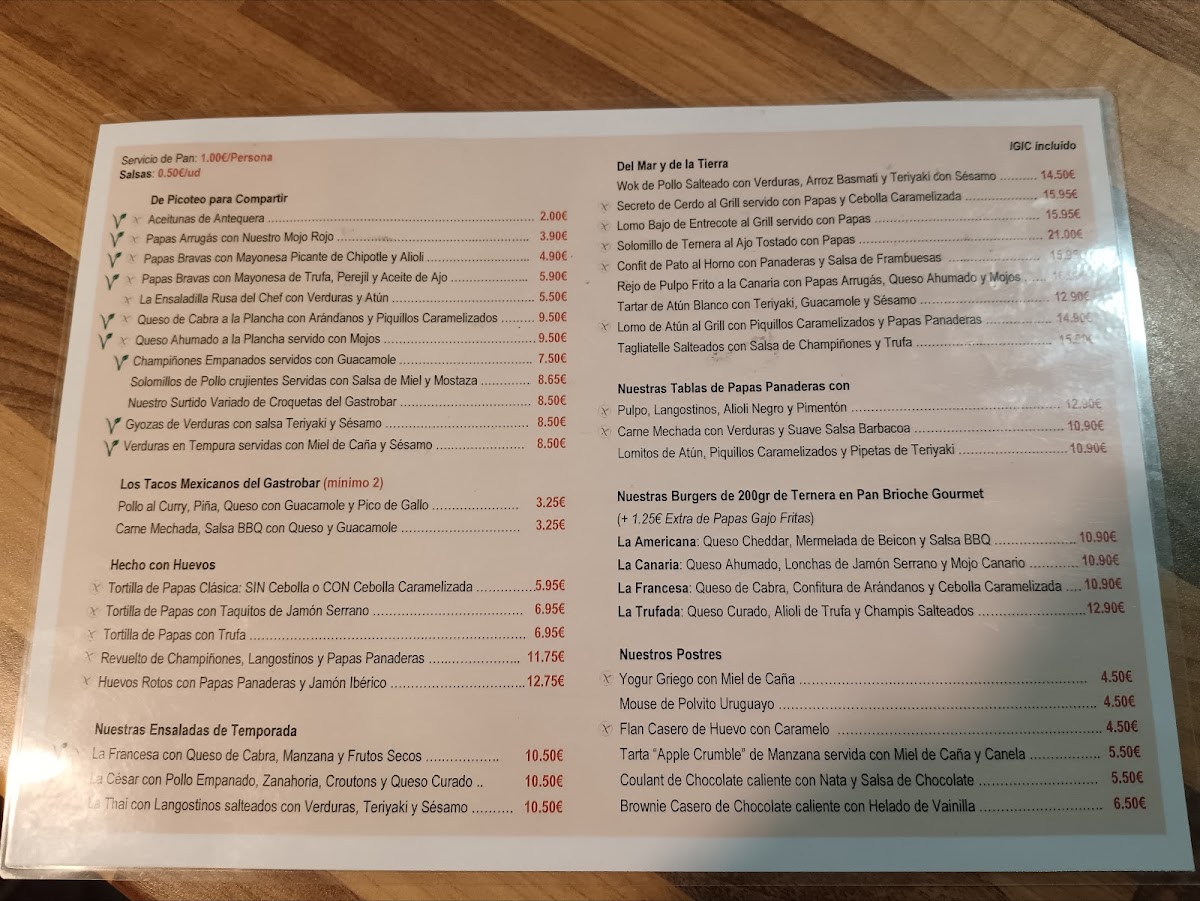 If you're in the mood for something to share, the De Picoteo Para Compartir offerings include hearty favorites like Tortilla De Papas CANARIA Con Gofio Y Mojo (Canarian potato omelette with gofio and mojo), La Ensaladilla Rusa Del Chef (chef’s Russian salad), and Nuestras Papas Bravas Con Mayonesa De Chipotle Y Alioli (bravas potatoes with chipotle mayo and alioli).